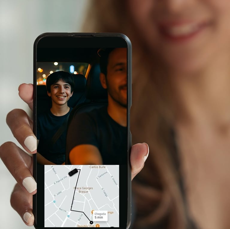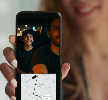 A Visu oferece o compartilhamento da imagem do passageiro ao vivo com seus familiares ou amigos, durante viagens em quaisquer aplicativos de transporte.